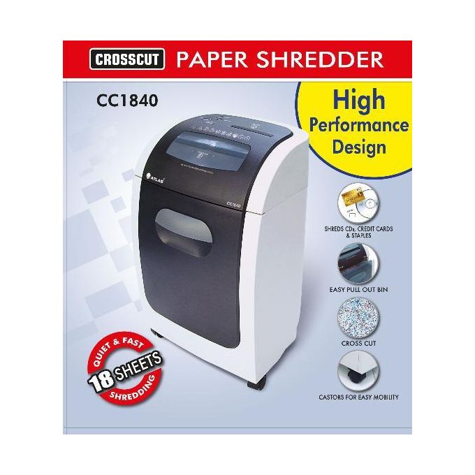 The ATLAS CC1840 CrossCut 18 sheets Paper Shredder is a powerful and efficient shredder capable of handling up to 18 sheets of paper at once. With its cross-cutting mechanism, it provides a higher level of security by shredding documents into small confetti-like pieces.