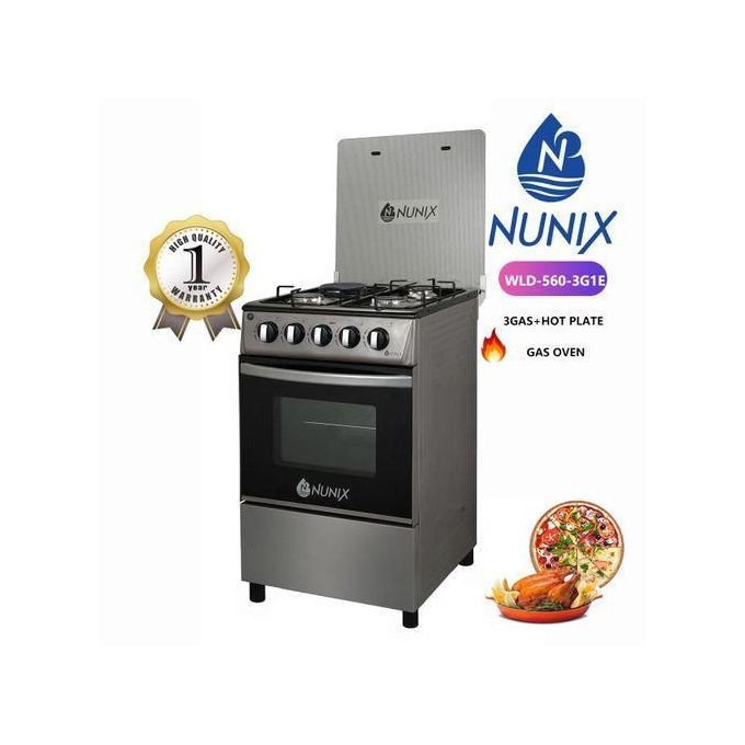 Nunix Cooker 50 * 55cm – 3 Gas, 1 Hotplate Electric Oven 3 Gas, Gas Oven (1YR Warranty)