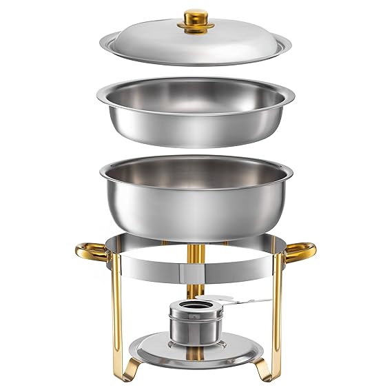 - – ELEGANT: Featuring sophisticated gold accents this round chafer is picture-perfect for upscale catered events, weddings, graduations and outdoor